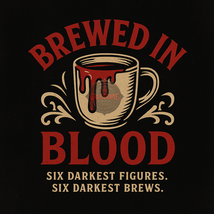 Welcome to Brewed in Blood, a coffee line born from the bloodstained pages of history. This unholy collection features six twisted souls—each one infamous, each one unforgettable. These aren’t just dark roasts… they are the darkest roasts, crafted to match the shadow-drenched legacies of the monsters that inspired them.