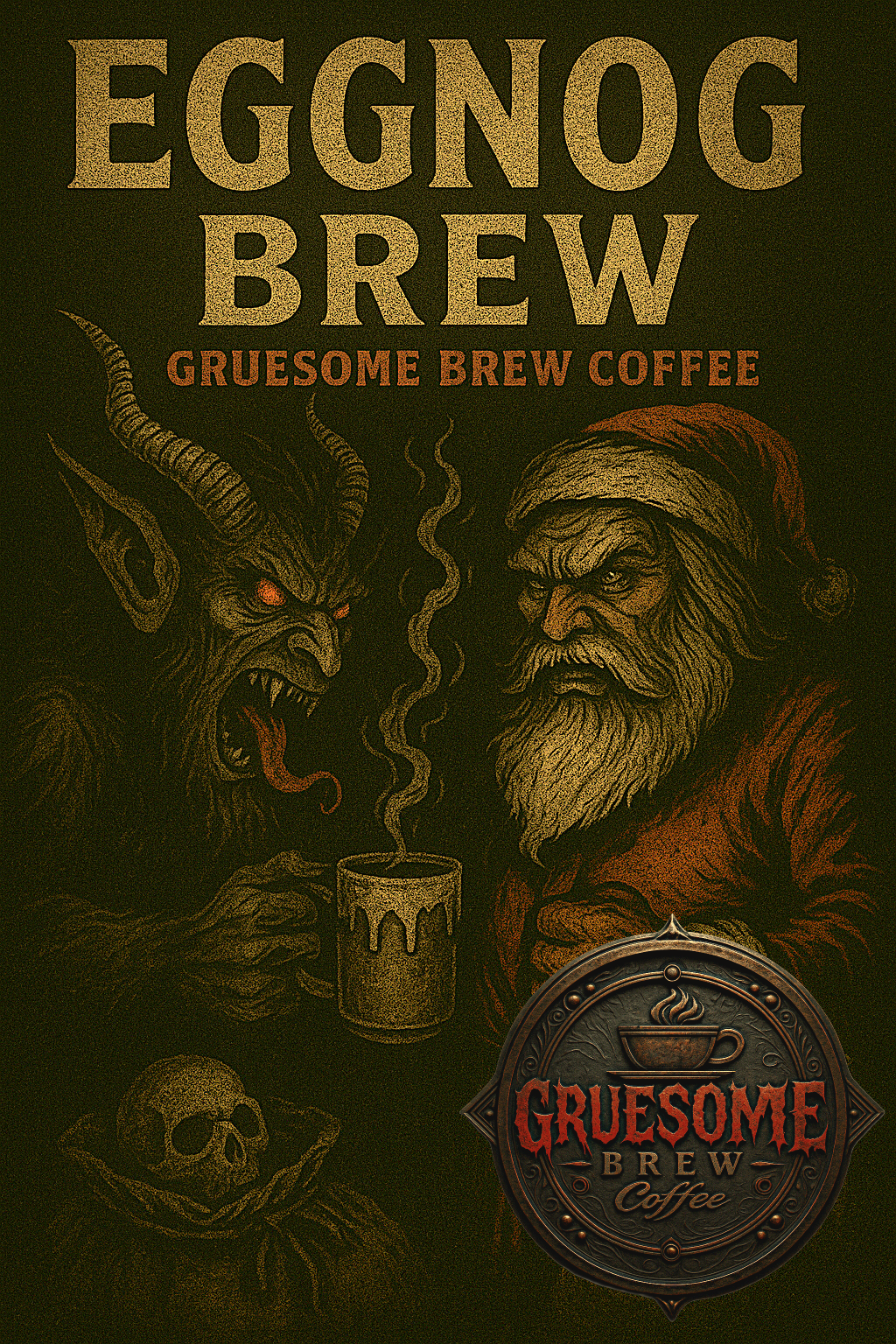 When the snow begins to fall and the world hushes under its icy blanket, two figures convene in secret. By the dim glow of a flickering hearth, Santa and Krampus sit across from one another-ancient adversaries forced to cooperate for one night only. The fire crackles as they review their lists, one marking names for gifts, the other marking souls for punishment. Between them, a steaming chalice of Gruesome Brew’s Spiced Eggnog-a heady blend of creamy holiday sweetness and devilish spice-keeps the peace for now.